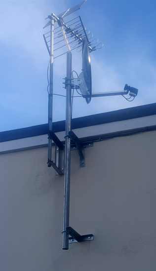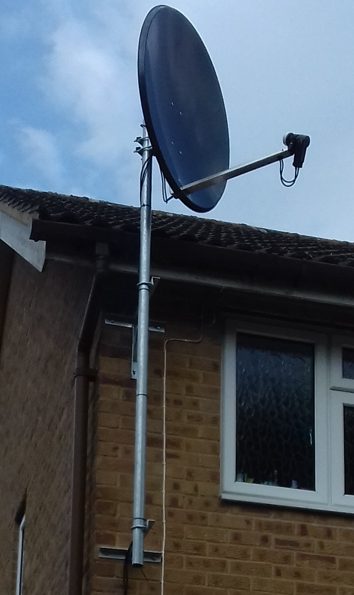 The pictures below show an 80cm dish mounted on a previous aerial installation, maybe the ‘professional’ installer did not have time to do it properly?