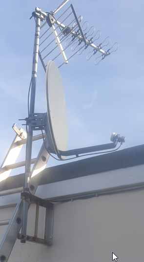 So, the professional installation method gave a result that was a higher signal strength in all weather conditions, no interference between aerial and dish and no danger of the combination coming crashing down.
